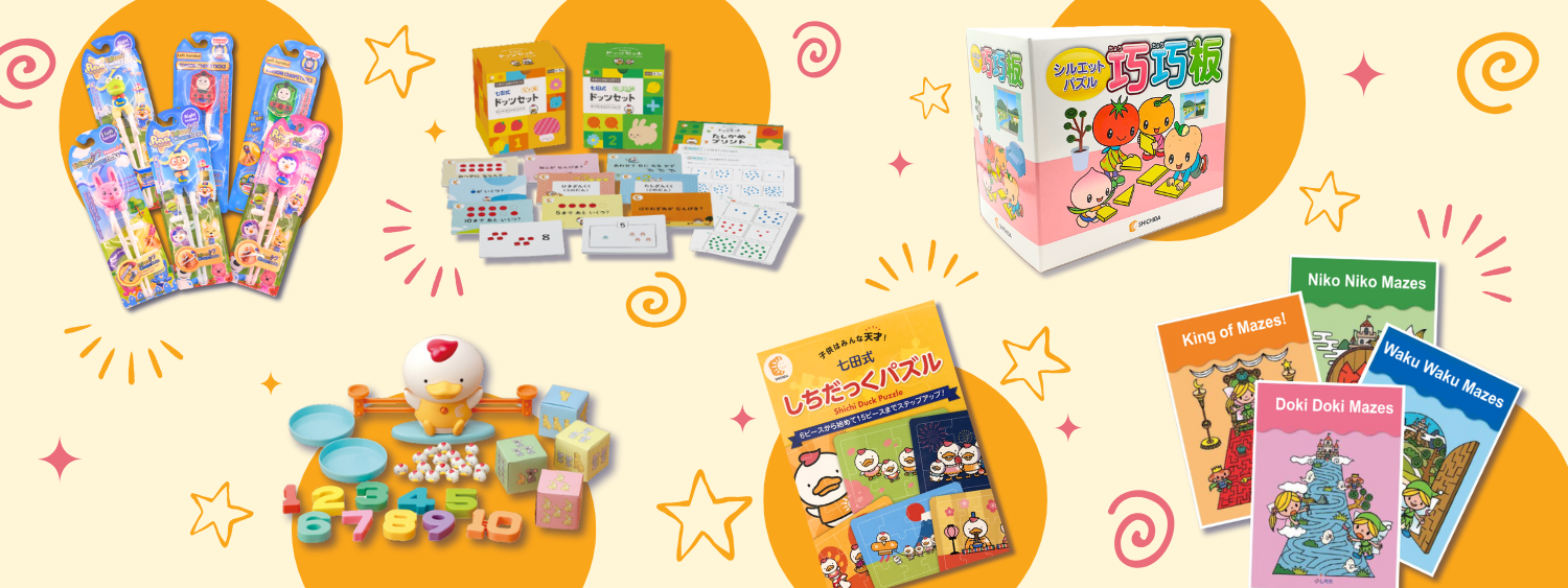 Mazes and workbooks used at Shichida to develop problem-solving, fine motor skills, logic, and early academic foundations through engaging activities