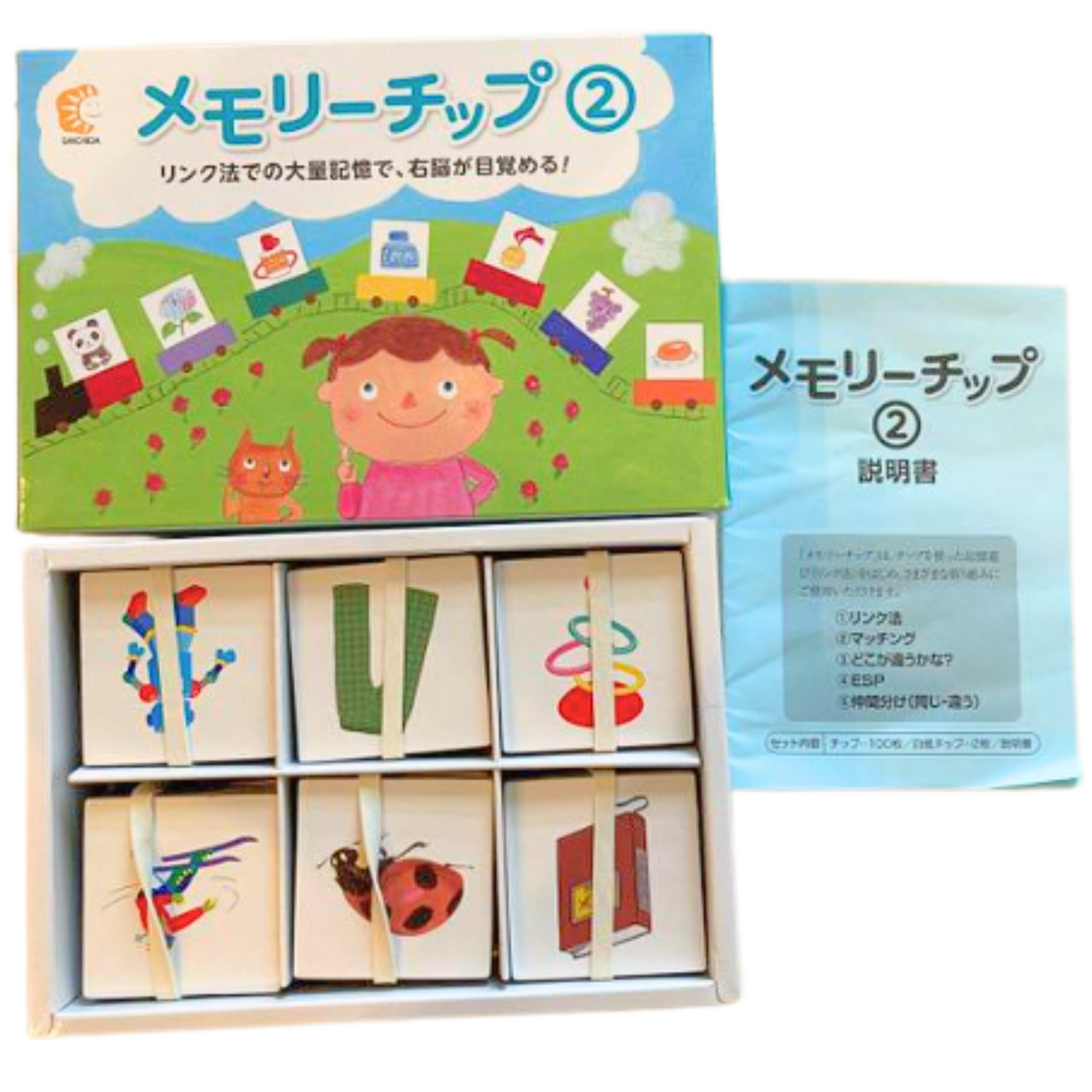 Memory Chip 2 offers a vibrant collection of 100 picture cards designed to advance your child's memory training, visual association, and language development through engaging play.